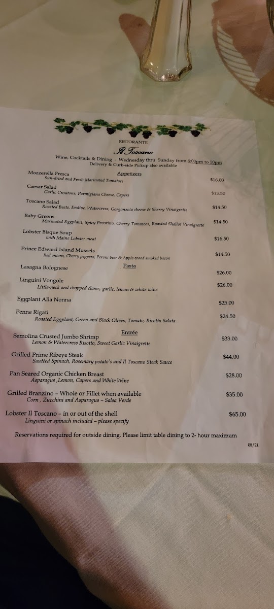 Introducing the Menu at Il Toscano